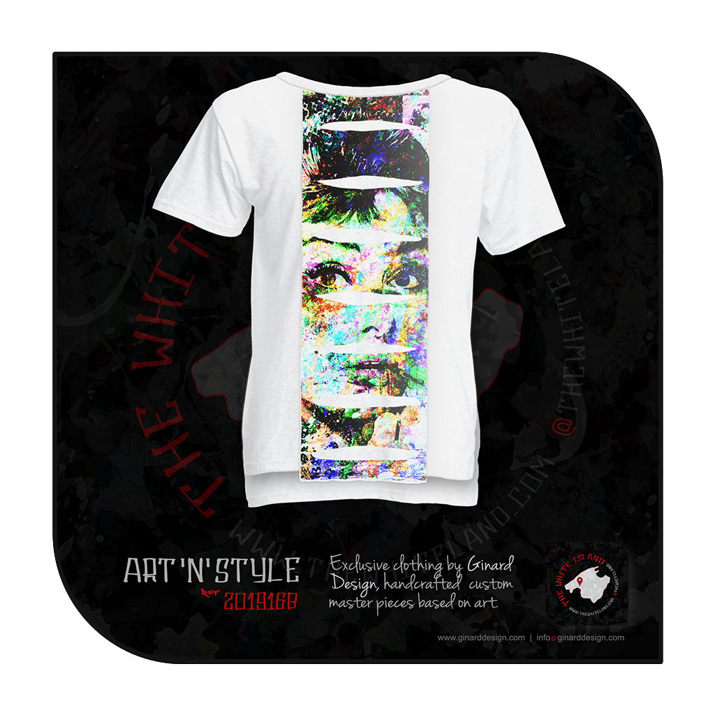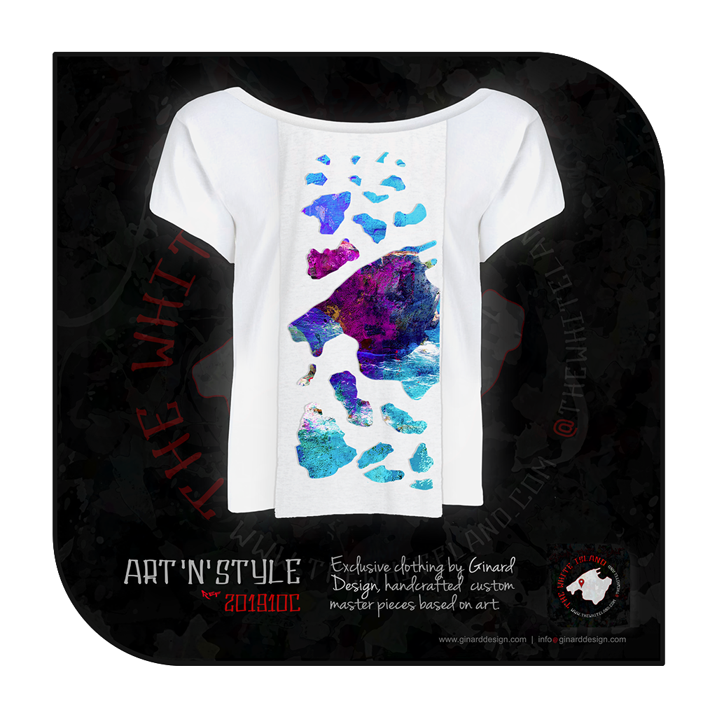 Clothing designs based on Ginard artworks performed on t-shirts and jeans with Internet of Things built-in technology. We run The Whiteland brand.