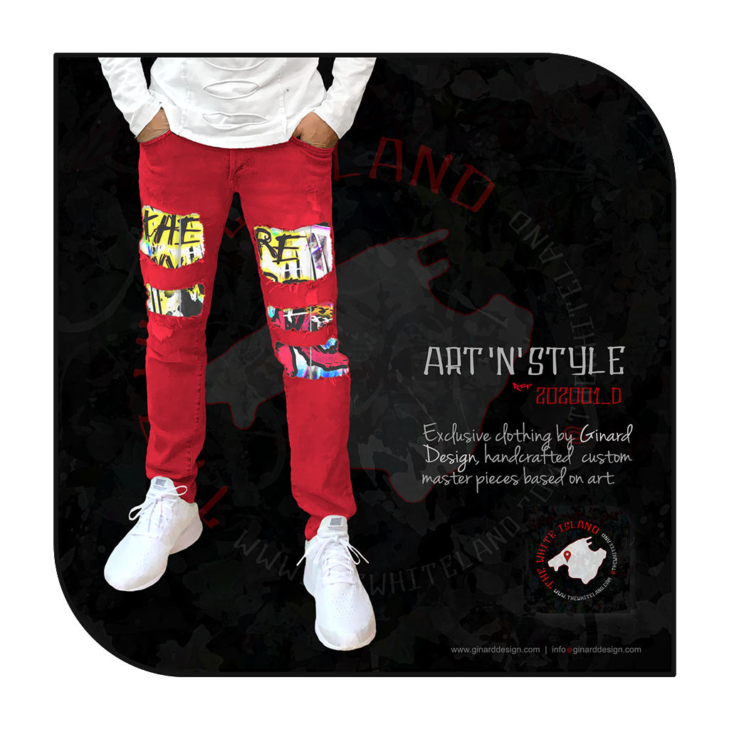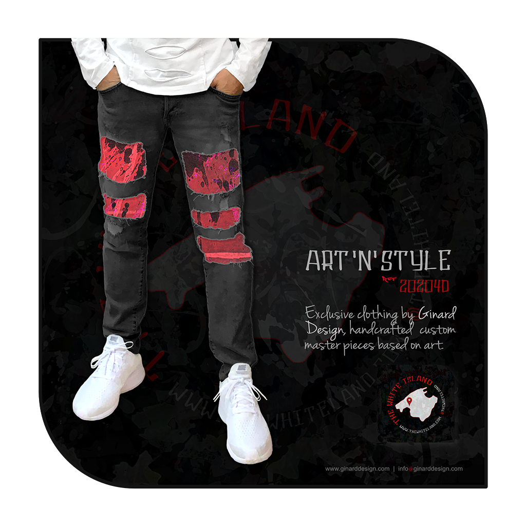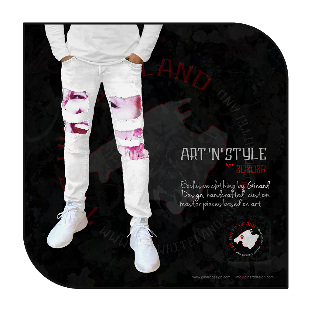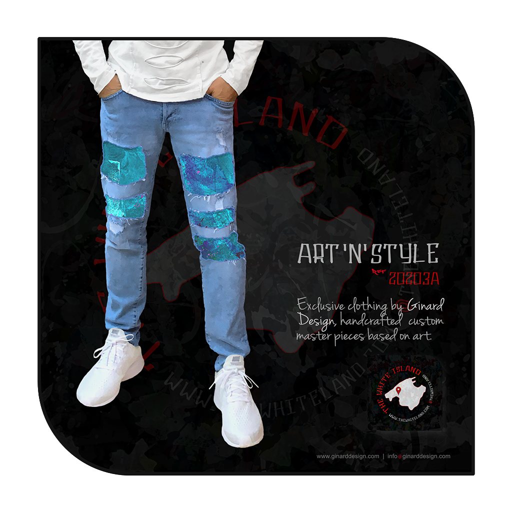 Ginard Design original and unique designs performed on jeans. Buy a jeans from our collection or order a custom design for you, we will perform a unique design based on your preferences. We also perform on demand personal designs on your own jeans -ask for availability on your wear-.